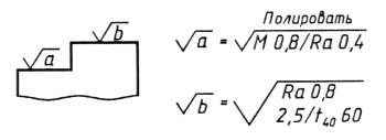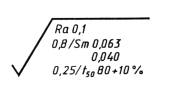 обозначенной знаком 1.5. Значение параметра шероховатости по ГОСТ 2789-73 указывают в обозначении шероховатости: после соответствующего символа, например: Ra 0,4; Rmax 6,3; Sm 0,63; t50 70; S 0,032; Rz 50. Примечание. В примере t50 70 указана относительная опорная длина профиля tp = 70 % при уровне сечения профиля р = 50 %, (Измененная редакция, Изм. № 3). 1.2-1.5. (Измененная редакция, Изм. № 2). 1.5а.