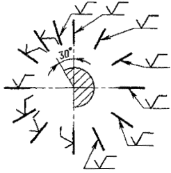 Обозначение одинаковой шероховатости поверхности сложной конфигурации