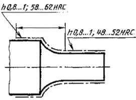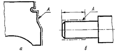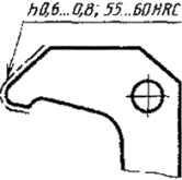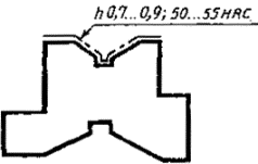Дата введения 01.01.71 Настоящий стандарт устанавливает правила нанесения на чертежи изделий всех отраслей промышленности обозначений покрытий (защитных, декоративных, электроизоляционных, износоустойчивых и т. п.), а также показателей свойств материалов, получаемых в результате термической и других видов обработки (химико-термической, наклепа и т. п.). (Измененная редакция, Изм. № 3). 1. ПРАВИЛА НАНЕСЕНИЯ ОБОЗНАЧЕНИЙ ПОКРЫТИЙ1.1. Обозначение покрытия - по ГОСТ 9.306 и ГОСТ 9.032 или отраслевому стандарту или все данные, необходимые для выполнения нестандартизованного покрытия, приводят в технических требованиях чертежа после слова «Покрытие». 1.2. В технических требованиях чертежа после обозначения покрытия приводят данные о материалах покрытия (марку и обозначение стандарта или технических условий), указанных в обозначении. 1.1, 1.2. (Измененная редакция, Изм. № 1). 1.3. (Исключен, Изм. № 1). 1.4. Если на все поверхности изделия должно быть нанесено одно и то же покрытие, то запись делают по типу: «Покрытие...». 1.5. Если должны быть нанесены покрытия на поверхности, которые можно обозначить буквами или однозначно определить (наружная или внутренняя поверхности и т. п.), то запись делают по типу: «Покрытие поверхностей А... »; «Покрытие наружных поверхностей ... ». 1.6. При нанесении одинакового покрытия на несколько поверхностей их обозначают одной буквой и запись делают по типу: «Покрытие поверхностей А ...» (черт. 1). 1.7. При нанесении различных покрытий на несколько поверхностей изделия их обозначают разными буквами (черт. 2) и запись делают по типу: «Покрытие поверхности А... , поверхностей Б ... ». 1.8. Если одно и то же покрытие наносят на большее количество поверхностей изделия, а на остальные поверхности наносят другое покрытие или их оставляют без покрытия, то последние обозначают буквами (черт. 3) и запись делают по типу: «Покрытие поверхности А... , остальных...» или «Покрытие..., кроме поверхности А». Черт. 1 Черт. 2 Черт. 3 1.9. Если необходимо нанести покрытие на поверхность сложной конфигурации или на часть поверхности, которую нельзя однозначно определить, то такие поверхности обводят штрихпунктирной утолщенной линией на расстоянии 0,8 ... 1 мм от контурной линии, обозначают их одной буквой и проставляют размеры, определяющие положение этих поверхностей; запись делают по типу: «Покрытие поверхности А...» (черт. 4). Размеры, определяющие положение поверхности, на которую должно быть нанесено покрытие, допускается не проставлять, если они ясны из чертежа (см. черт. 4а). (Измененная редакция, Изм. № 2). 1.10. Участки поверхности, подлежащие покрытию, отмечают, как показано на черт 5, с указанием размеров, определяющих положение этих участков. Черт. 4 Черт. 5 2. ПРАВИЛА НАНЕСЕНИЯ ПОКАЗАТЕЛЕЙ СВОЙСТВ МАТЕРИАЛОВ2.1. На чертежах изделий, подвергаемых термической и другим видам обработки, указывают показатели свойств материалов, полученных в результате обработки, например: твердость (HRC, HRB, HRA, HB, HV), предел прочности (sв), предел упругости (sу), ударная вязкость (aк) и т. п. Глубину обработки обозначают буквой h. Величины глубины обработки и твердости материалов на чертежах указывают предельными значениями: «от ... до», например: h 0,7 ... 0,9; 40 ... 46 HRC. В технически обоснованных случаях допускается указывать номинальные значения этих величин с предельными отклонениями, например, h 0,8±0,1; (43±3) HRC. Д