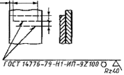 Черт. 11 3.3. На чертеже симметричного изделия, при наличии на изображении оси симметрии, допускается отмечать линиями-выносками и обозначать швы только на одной из симметричных частей изображения изделия. 3.4. На чертеже изделия, в котором имеются одинаковые составные части, привариваемые одинаковыми швами, эти швы допускается отмечать линиями-выносками и обозначать только у одного из изображений одинаковых частей (предпочтительно у изображения, от которого приведена линия-выноска с номером позиции). 3.5. Допускается не отмечать на чертеже швы линиями-выносками, а приводить указания по сварке записью в технических требованиях чертежа, если эта запись однозначно определяет места сварки, способы сварки, типы швов сварных соединений и размеры их конструктивных элементов в поперечном сечении и расположение швов. 3.6. Одинаковые требования, предъявляемые ко всем швам или группе швов, приводят один раз - в технических требованиях или таблице швов. ПРИЛОЖЕНИЕ 1