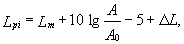 где т - число измерительных поясов; Lpij - поясный уровень звуковой мощности в октавной полосе частот, определяемый по формуле