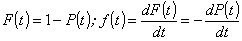 где Т - средняя наработка на отказ (п. 6.11); Тв - среднее время восстановления (п. 6.21). К терминам "Расчетный показатель надежности", "Экспериментальный показатель надежности", "Эксплуатационный показатель надежности", "Экстраполированный показатель надежности" (пп. 6.4; 6.5; 6.6; 6.7) Такую классификацию показателей надежности вводят в зависимости от способов их получения. Аналогичная классификация содержится в международных документах ИСО, МЭК. и ЕОКК [4-6]. Наличие этих понятий должно предупредить путаницу, которая имеет место на практике при обсуждении численных данных, полученных разными способами и на разных стадиях жизненного цикла объекта. К термину "Вероятность безотказной работы" (п. 6.8) Вероятность безотказной работы определяется в предположении, что в начальный момент времени (момент начала исчисления наработки) объект находился в работоспособном состоянии. Обозначим через t время или суммарную наработку объекта (в дальнейшем для краткости называем t просто наработкой). Возникновение первого отказа - случайное событие, а наработка t от начального момента до возникновения этого события - случайная величина. Вероятность безотказной работы Р(t) объекта в интервале от 0 до t включительно определяют как Здесь Р{×} - вероятность события, заключенного в скобках. Вероятность безотказной работы Р(t) является функцией наработки t. Обычно эту функцию предполагают непрерывной и дифференцируемой. Если способность объекта выполнять заданные функции характеризуется одним параметром v, то вместо (1) имеем формулу где v* и v**- предельные по условиям работоспособности значения параметров (эти значения, вообще, могут изменяться во времени). Аналогично вводят вероятность безотказной работы в более общем случае, когда состояние объекта характеризуется набором параметров с допустимой по условиям работоспособности областью значений этих параметров [8]. Вероятность безотказной работы Р(t) связана с функцией распределения F(t) и плотностью распределения f(t) наработки до отказа: Наряду с понятием "вероятность безотказной работы" часто используют понятие "вероятность отказа", которое определяется следующим образом: это вероятность того, что объект откажет хотя бы один раз в течение заданной наработки, будучи работоспособным в начальный момент времени. Вероятность отказа на отрезке от 0 до t определяют по формуле