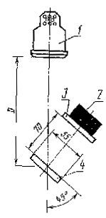 Экран располагают под углом 45° к оси потока ультрафиолетового излучения. На расстоянии 70 мм от экрана устанавливают датчик фотоэлектрического люксметра общего назначения типа Ю-16 или Ю-116 по ГОСТ 14841-80, размещают поглощающий ультрафиолетовое излучение светофильтр из стекла марки ЖС4 по ГОСТ 9411-81 толщиной 5 мм. Размер фильтра выбирают в зависимости от размера входного окна используемого люксметра. Плоскости датчика и экрана должны быть параллельными. Облучаемый (люминесцирующий) размер экрана должен быть 55х55 мм. При хранении экран должен быть защищен от воздействия видимого и ультрафиолетового излучений.