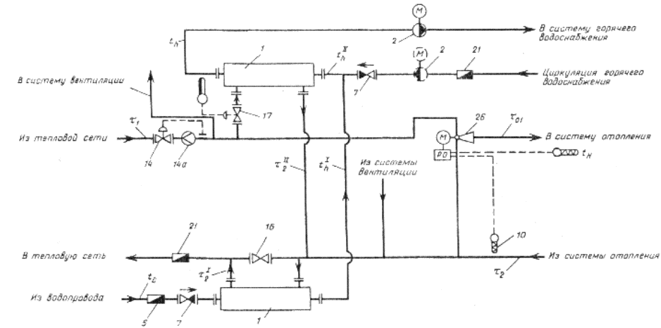 при независимом присоединении систем отопления и вентиляции через общий водоподогреватель