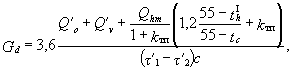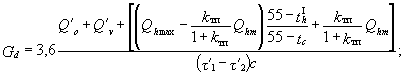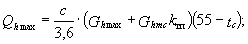 где Qomax, Qvmax - соответственно максимальные тепловые потоки на отопление и вентиляцию, Вт. Расход нагреваемой воды, кг/ч, для расчета водоподогревателей горячего водоснабжения определяется по формуле