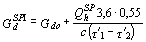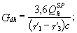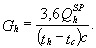 где QhSP определяется при наличии баков-аккумуляторов по формуле (1) прил. 2, а при отсутствии баков-аккумуляторов - по формуле (2) прил. 2. 2. Температуру нагреваемой воды следует принимать: на входе в водоподогреватель tc - равной 5 °С, если отсутствуют эксплуатационные данные на выходе из водоподогревателя th - равной 60 °С, а при вакуумной деаэрации - 65 °С. 3. Температуру греющей воды следует принимать: на входе в водоподогреватель t¢1 - равной температуре воды в подающем трубопроводе тепловой сети на вводе в тепловой пункт при температуре наружного воздуха в точке излома графика температур воды; на выходе из водоподогревателя t¢3 - равной 30 °С. 4. Расчетные расходы воды Gdh и Gh, кг/ч, для расчета водоподогревателя горячего водоснабжения следует определять по формулам греющей воды