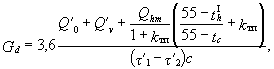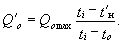 2. В формулах (8), (10) коэффициент 1,2 учитывает увеличение среднечасового теплового потока на горячее водоснабжение в сутки наибольшего водопотребления. 3. Расход теплоты на отопление Q¢o, Вт, при температуре наружного воздуха, соответствующей точке излома графика температур воды t¢н, с учетом постоянной в течение отопительного периода величины бытовых или производственных тепловыделений определен по формуле