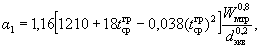В случае если соотношение ходов, определенное по формуле (1), оказалось > 2 (при подстановке DPн = 100 кПа, а DPгр = 40 кПа - для I ступени), водоподогреватель собираем из двух раздельных теплообменников и более и в формулах (4) или (5) расход того теплоносителя, у которого получилось меньше ходов, уменьшаем соответственно в 2 раза и более. 5. Коэффициент теплоотдачи a1, Вт/(м2×°С) от греющей воды к стенке пластины определяется по формуле