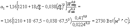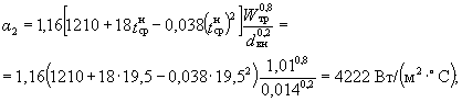 3. Коэффициент теплоотдачи a1, Вт/(м2×°С), от греющей воды к стенке трубки определяется по формуле