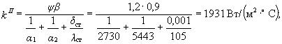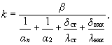 где 7. Коэффициент теплопередачи k, Вт/(м2×°С), определяется по формуле