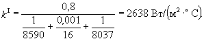 в) коэффициент теплопередачи, принимая j = 0,8, формула (8):