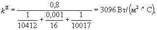 в) коэффициент теплопередачи, принимая j = 0,8, формула (8)