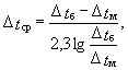 где t01 - температура воды в подающем трубопроводе тепловых сетей за ЦТП или в подающем трубопроводе системы отопления при установке водоподогревателя в ИТП при расчетной температуре наружного воздуха tо, °С. В этом случае расчетная разность температур Dtср, °С, определится по формуле