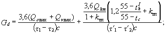 При независимом присоединении систем отопления и вентиляции через общий водоподогреватель расчетные расходы воды Gdo и Gomax, кг/ч, следует определять по формулам: греющей воды