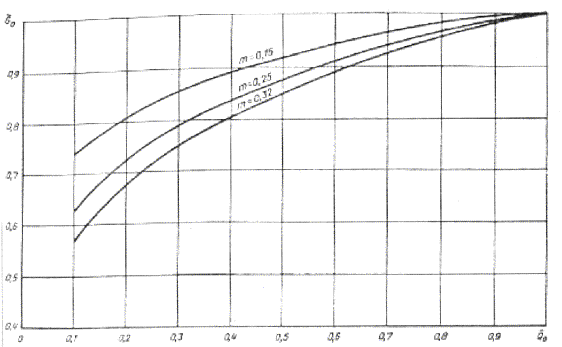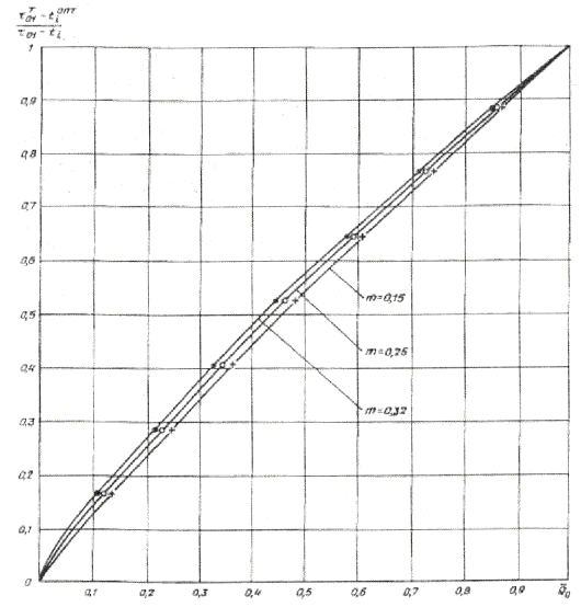 температуре воды в подающем трубопроводе Эти рисунки иллюстрируют значительное влияние на степень криволинейности графиков температур воды фактического значения коэффициента m, который зависит от типа отопительных приборов и способа прокладки стояка. Так, например, в системах отопления с замоноличенными стояками и конвекторами «Прогресс» следует принимать m = 0,15, а в системах отопления с конвекторами «Комфорт» и открыто проложенными стояками m = 0,32. В системах с чугунными радиаторами m = 0,25. Рис. 3. Графики