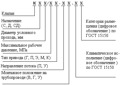 valves. Дата введения 1998-01-01 1 ОБЛАСТЬ ПРИМЕНЕНИЯНастоящий стандарт распространяется на вновь разрабатываемые и выпускаемые клапаны узлов управления спринклерных и дренчерных установок пожаротушения, предназначенные для пуска огнетушащего вещества и выдачи управляющего импульса для сигнала тревоги о их срабатывании. Требования настоящего стандарта являются обязательными. 2 НОРМАТИВНЫЕ ССЫЛКИ2.1 В настоящем стандарте использованы ссылки на следующие стандарты: ГОСТ 2.601-95 ЕСКД. Эксплуатационные документы ГОСТ 12.2.003-91 ССБТ. Оборудование производственное. Общие требования безопасности ГОСТ 12.2.063-81 ССБТ. Арматура промышленная трубопроводная. Общие требования безопасности ГОСТ 12.4.026-76 Цвета сигнальные и знаки безопасности ГОСТ 27.301-95 Надежность в технике. Расчет надежности. Основные положения ГОСТ 27.410-87 Надежность в технике. Методы контроля показателей надежности и планы контрольных испытаний на надежность ГОСТ 15150-69 Машины, приборы и другие технические изделия. Исполнение для различных климатических районов. Категории, условия эксплуатации, хранения и транспортирования в части воздействия климатических факторов внешней среды ГОСТ 18321-73 Статистический контроль качества. Методы случайного отбора выборок штучной продукции ГОСТ 26104-89 Средства измерений электронные. Технические требования в части безопасности. Методы испытаний ГОСТ Р 50680-94 Установки водяного пожаротушения автоматические. Общие технические требования. Методы испытаний 3 ОПРЕДЕЛЕНИЯ3.1 В настоящем стандарте применяют следующие термины с соответствующими определениями: 3.1.1 клапан спринклерный: Клапан, предназначенный для спринклерных установок пожаротушения. 3.1.2 клапан дренчерный: Клапан, предназначенный для дренчерных установок пожаротушения. 3.1.3 клапан спринклерно-дренчерный: Клапан, предназначенный для спринклерных и дренчерных установок пожаротушения. 3.1.4 комбинированный привод клапана: Привод клапана, сочетающий два или более типов исполнения привода. 3.1.5 запорное устройство: Подвижный узел клапана, предназначенный для перекрытия его проходного сечения. 4 КЛАССИФИКАЦИЯ, ТИПЫ И ОСНОВНЫЕ ПАРАМЕТРЫ4.1 По назначению клапаны подразделяют на: - спринклерные (С); - дренчерные (Д); - спринклерно-дренчерные (СД). 4.2 По типу исполнения привода клапаны подразделяют на: - с гидравлическим приводом (Г); - с пневматическим приводом (П); - с электрическим приводом (Э); - с механическим приводом (М); - с комбинированным приводом (К). 4.3 По направлению потока жидкости клапаны подразделяют на: - прямоточные (П); - угловые (У). 4.4 По рабочему положению на трубопроводе клапаны подразделяют на: - вертикальные (В); - горизонтальные (Г); - универсальные (У). 4.5 Клапаны должны иметь следующую структуру обозначения: