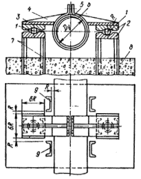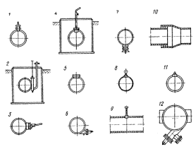 Устанавливается сверху трубы, корпус подставки погружается в трубопровод |