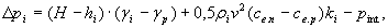 где Н - высота здания, м, от уровня средней планировочной отметки земли до верха карниза, центра вытяжных отверстий фонаря или устья шахты; hi - расчетная высота, м, от уровня земли до верха окон, балконных дверей, ворот, проемов или до оси горизонтальных и середины вертикальных стыков стеновых панелей; gi,gp - удельный вес, Н/м3, соответственно наружного воздуха и воздуха в помещении, определяемый по формуле