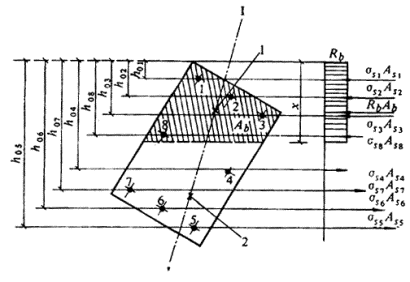3.7. Расчет сжатых бетонных элементов (при косом внецентренном сжатии) производится по формуле (1), при этом: