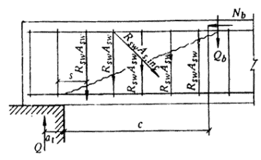 Asw - площадь сечения хомутов, расположенных в одной, нормальной к продольной оси элемента плоскости, пересекающей наклонное сечение;