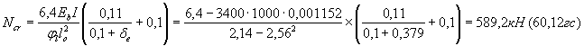 eо - эксцентриситет продольной силы N относительно центра тяжести приведенного сечения, определяемый в соответствии с указаниями п. 1.21 СНиП 2.03.01-84;