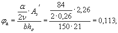 здесь Rs - расчетное сопротивление арматуры растяжению с учетом соответствующих коэффициентов условий работы арматуры gsi , за исключением gs6 (см. п. 3.13 СНиП 2.03.01-84);