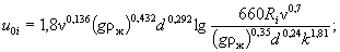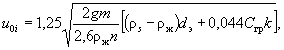 где ΔWi - увеличение объема размытого прорана, м3: ΔWi = Wi - Wi-1 = 0,5(biyili - bi-1yi-1li-1); (22) μi - транспортирующая (размывающая) способность потока. В зависимости от гидравлических параметров потока и диаметра частиц размываемого грунта они могут переноситься потоком либо во взвешенном, либо в донном состоянии. Если скорость потока ui ≥ 2,7u0i и все частицы d ≤ 0,15 мм (переносятся во взвешенном состоянии), то величина μi может быть определена как