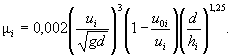 где uкрi - критическая скорость потока, м/с, определяется: при yi < Hmax uкрi = 2,63hi0,5; (24) при yi = Hmax uкрi = 3,77hi0,2. (25) Если ui < 2,7u0i и все частицы d > 0,15 мм (движутся в донном режиме), то величина μi определяется по формуле