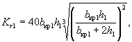 где iв.о = 1/nотк. Задавая различные значения h1 (h2) (здесь и далее по тексту значения параметров, указанных в скобках, относятся ко второму варианту расчета), определяем характеристики потока: площадь сечения, м2 ω1 = b11h1, ω2 = b12h2; (33) смоченный периметр потока χ1 = b11 + 2h1, χ2 = b12 + 2h2; (34) гидравлический радиус R1 = ω1/χ1, R2 = ω2/χ2; (35) коэффициент Шези где n - коэффициент шероховатости, принимаемый равным 0,025; значение расчетного модуля расхода Kr Подставляя значения параметров, определяемых по уравнениям (33) - (36), в выражения (37), получим