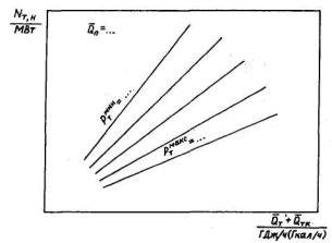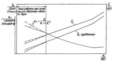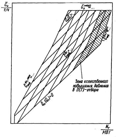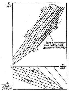 отбора и отработавшего пара в конденсаторе (диаграмма режимов по расходу пара);