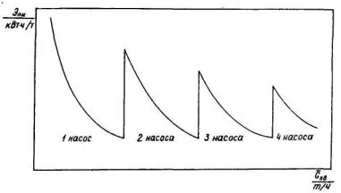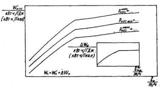 Рис. П6.7 Удельный расход электроэнергии на питательные электронасосы Для электростанции с поперечными связями