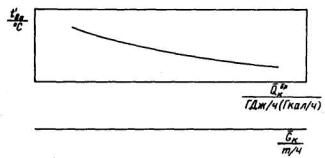 расхода пара через промежуточный пароперегреватель температуры питательной воды за группой ПВД tпв (°С) от часового расхода свежего пара на турбоагрегат (рис. П4.22); часового