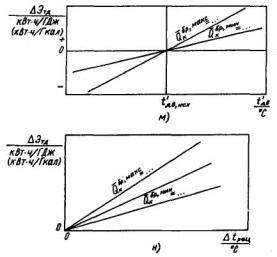 Изменения экономичности работы турбоагрегата за счет старения (Измененная редакция, Изм. № 1). 4.2.4.15. Изменения экономичности работы турбоагрегата за счет факторов, указанных в пп. 3.2.3.3 - 3.2.3.6. 4.2.4.16. Давления пара в камере регулируемого производственного отбора рт (МПа(кгс/см2)]. 4.2.4.17. Давления пара в камере регулируемого отопительного отбора рт (МПа(кгс/см2)]. 4.2.4.18. Давления отработавшего пара для турбоагрегатов с противодавлением и турбоагрегатов с регулируемыми отборами при работе в режиме с полным использованием тепла отработавшего пара (температуры обратной сетевой воды при ее подогреве в конденсаторе или встроенном пучке). 4.2.4.19. Температуры сетевой воды перед подогревателями сетевой воды t'псв1 (нагрева ее в подогревателях ∆tпсв (°С) при двухступенчатом подогреве. 4.2.4.20. Соотношения между часовыми расходами пара из отборов турбоагрегата к потребителям и возвращаемого конденсата. 4.2.4.21. Других внешних факторов, присущих условиям работы оборудования конкретной электростанции и влияющих на экономичность работы турбоагрегата. 4.2.5 (Измененная редакция, Изм. № 1). 4.2.6. Графические зависимости основных и промежуточных показателей в энергетических характеристиках турбоагрегата должны быть построены для всего рабочего диапазона нагрузок и возможных режимов работы. (Измененная редакция, Изм. № 1). 4.2.7. Энергетические характеристики турбоагрегата определяются при условии равенства часовых расходов свежего пара и питательной воды, а также пара из отборов турбоагрегата к потребителям и возвращаемого конденсата. (Измененная редакция, Изм. № 1). 4.3. Поправки к основным и промежуточным показателям на влияние внешних факторов 4.3.1. Энергетические характеристики турбоагрегата должны содержать поправки к основным и промежуточным показателям в виде аналитических или графических зависимостей от значений (или изменений) внешних факторов, параметров, показателей. (Измененная редакция, Изм. № 1). 4.3.2 (Измененная редакция, Изм. № 1). 4.3.3. В общем случае поправки к основным показателям турбоагрегата приводятся на отклонение значений следующих внешних факторов: (Измененная редакция, Изм. № 1). 4.3.3.1 (Измененная редакция, Изм. № 1). 4.3.3.2. Давления обработавшего пара турбоагрегата в конденсаторе, или температуры и часового расхода охлаждающей воды через конденсатор. 4.3.3.3. Соотношения часового расхода питательной: воды и часового расхода свежего пара. 4.3.3.4. Расхода питательной воды, подаваемой на впрыск в промежуточный пароперегреватель. 4.3.3.5. Отпуска (подвода) тепла из нерегулируемых отборов сверх нужд собственной регенерации. 4.3.3.6. Отпуска тепла из конденсатора турбоагрегата. 4.3.3.7. Давления отработавшего пара для каждого турбопривода механизмов собственных нужд энергоблока. 4.3.3.8. Старения оборудования при продолжительности работы турбоагрегата с начала эксплуатации сверх указанной в условиях построения характеристики. 4.3.3.9. Количество пусков турбоагрегата, произведенных в соответствии с диспетчерским графиком нагрузки из различных тепловых состояний. 4.3.3.10. Давления в камере регулируемого производственного отбора турбоагрегата. 4.3.3.11. Давления в камере регулируемого отопительного отбора турбоагрегата. 4.3.3.12. Температуры сетевой воды на входе в ее подогреватели (нагрева сетевой воды в подогревателях) при двухступенчатом подогреве. 4.3.3.13 (Изме