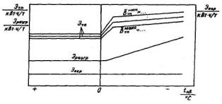 турбоагрегата затрат мощности на циркуляционные насосы турбоагрегата Nцэн (кВт) или удельного расхода электроэнергии на них Эцэн (%) от электрической мощности на выводах генератора (рис. П4.25 - П4.27); затрат