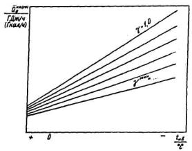 расхода свежего пара на турбоагрегат от его мощности при различных значениях