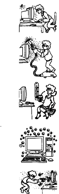 • повышенное содержание в воздухе патогенной (вызывающей заболевания) микрофлоры (прежде всего - стафилококка), особенно зимой при повышенной температуре в помещении, плохом проветривании, пониженной влажности и нарушении аэроионного состава воздуха; • повышенный уровень шума от работающих вентилятора охлаждения ПК и принтера, от неотрегулированных источников люминесцентного освещения и др.; • повышенный