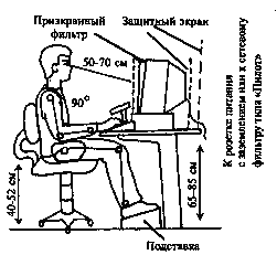 следует располагать на расстоянии не менее 1.5.6. Помещение, в котором расположены ПК, в соответствии с санитарными и другими нормами безопасности должно быть оборудовано: • системами освещения (естественного или искусственного, общего или комбинированного - по необходимости);