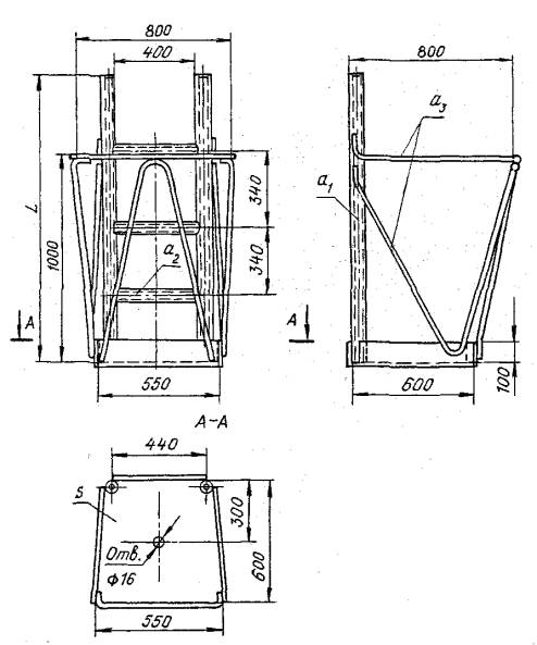 Приказом Министерства монтажных и специальных строительных работ СССР от 15 мая 1984 г. № 146 срок введения установлен с 1 января 1985 г. Настоящий стандарт распространяется на площадки металлические (далее площадки), стальные и из алюминиевых сплавов, навешиваемые на навесные лестницы в процессе производства строительно-монтажных работ. Площадки должны быть изготовлены в соответствии с рабочими чертежами и требованиями настоящего стандарта; в обоснованных случаях допускается изготовление площадок других типов и конструкций по чертежам, разработанным и утвержденным в установленном порядке, при этом эксплуатационные и прочностные характеристики площадок должны быть не ниже установленных данным стандартом. 1. ТИПЫ1.1. Площадки изготавливают двух типов: ПС-1 - площадка монтажная стальная; ПА-1 - площадка монтажная алюминиевая. 2. КОНСТРУКЦИЯ И РАЗМЕРЫ2.1. Конструкция и основные размеры площадок показаны на черт. 1 и 2; материалы и сортамент, используемые для изготовления элементов площадок, приведены в таблице. 2.2. Ступени и элементы ограждения должны быть круглого сечения. 2.3. Расстояние между тетивами в свету должно быть 400 мм. 2.4. Конструкция площадки должна обеспечивать расположение ступеней площадки напротив ступеней лестницы, для навески на которую эта площадка предназначена. 2.5. Расстояние от нижней ступени площадки до ее рабочего настила не должно превышать расстояния между ступенями. Площадка монтажная ПС-1, навешиваемая на лестницу