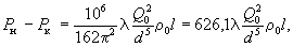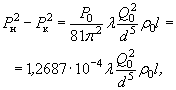 РАСЧЕТ ДИАМЕТРА ГАЗОПРОВОДА И ДОПУСТИМЫХ ПОТЕРЬ ДАВЛЕНИЯ3.21 Пропускная способность газопроводов может приниматься из условий создания при максимально допустимых потерях давления газа наиболее экономичной и надежной в эксплуатации системы, обеспечивающей устойчивость работы ГРП и газорегуляторных установок (ГРУ), а также работы горелок потребителей в допустимых диапазонах давления газа. 3.22 Расчетные внутренние диаметры газопроводов определяются исходя из условия обеспечения бесперебойного газоснабжения всех потребителей в часы максимального потребления газа. 3.23 Расчет диаметра газопровода следует выполнять, как правило, на компьютере с оптимальным распределением расчетной потери давления между участками сети. При невозможности или нецелесообразности выполнения расчета на компьютере (отсутствие соответствующей программы, отдельные участки газопроводов и т.п.) гидравлический расчет допускается производить по приведенным ниже формулам или по номограммам (приложение Б), составленным по этим формулам. 3.24 Расчетные потери давления в газопроводах высокого и среднего давления принимаются в пределах категории давления, принятой для газопровода. 3.25 Расчетные суммарные потери давления газа в газопроводах низкого давления (от источника газоснабжения до наиболее удаленного прибора) принимаются не более 180 даПа, в том числе в распределительных газопроводах 120 даПа, в газопроводах-вводах и внутренних газопроводах - 60 даПа. 3.26 Значения расчетной потери давления газа при проектировании газопроводов всех давлений для промышленных, сельскохозяйственных и бытовых предприятий и организаций коммунально-бытового обслуживания принимаются в зависимости от давления газа в месте подключения с учетом технических характеристик принимаемого к установке газового оборудования, устройств автоматики безопасности и автоматики регулирования технологического режима тепловых агрегатов. 3.27 Падение давления на участке газовой сети можно определять: - для сетей среднего и высокого давлений по формуле где Pн - абсолютное давление в начале газопровода, МПа; Рк - абсолютное давление в конце газопровода, МПа; Р0 = 0,101325 МПа; l - коэффициент гидравлического трения; l - расчетная длина газопровода постоянного диаметра, м; d - внутренний диаметр газопровода, см; r0 - плотность газа при нормальных условиях, кг/м3; Q0 - расход газа, м3/ч, при нормальных условиях; - для сетей низкого давления по формуле