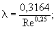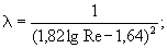 где Рн - давление в начале газопровода, Па; Рк - давление в конце газопровода, Па; l, l, d, r0, Q0 - обозначения те же, что и в формуле (3). 3.28 Коэффициент гидравлического трения l определяется в зависимости от режима движения газа по газопроводу, характеризуемого числом Рейнольдса, где n - коэффициент кинематической вязкости газа, м2/с, при нормальных условиях; Q0, d - обозначения те же, что и в формуле (3), и гидравлической гладкости внутренней стенки газопровода, определяемой по условию (6), где Re - число Рейнольдса; п - эквивалентная абсолютная шероховатость внутренней поверхности стенки трубы, принимаемая равной для новых стальных - 0,01 см, для бывших в эксплуатации стальных - 0,1 см, для полиэтиленовых независимо от времени эксплуатации - 0,0007 см; d - обозначение то же, что и в формуле (3). В зависимости от значения Re коэффициент гидравлического трения А определяется: - для ламинарного режима движения газа Re £ 2000 - для критического режима движения газа Re = 2000 - 4000 l = 0,0025 Re0,333; (8) - при Re > 4000 - в зависимости от выполнения условия (6); - для гидравлически гладкой стенки (неравенство (6) справедливо): - при 4000 < Re < 100000 по формуле