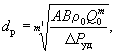 где dp - расчетный диаметр, см; А, В, т, т1 - коэффициенты, определяемые по таблицам 6 и 7 в зависимости от категории сети (по давлению) и материала газопровода; Q0 - расчетный расход газа, м3/ч, при нормальных условиях; DРуд - удельные потери давления (Па/м - для сетей низкого давления, МПа/м - для сетей среднего и высокого давления), определяемые по формуле (16) DРдоп - допустимые потери давления (Па - для сетей низкого давления, МПа/м - для сетей среднего и высокого давления); L - расстояние до самой удаленной точки, м. Таблица 6