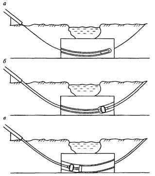 В илистых и плывунных грунтах, не обеспечивающих сохранение откосов, траншеи и котлованы разрабатываются с креплением и водоотливом. На дне котлована устраивается приямок для сбора и периодической откачки воды. 10.29 Наибольшая крутизна откосов траншеи и котлованов, устанавливаемых без крепления в грунтах, находящихся выше уровня поземных вод, следует принимать в соответствии с требованиями ГОСТ Р 12.3.048. 10.30 Крутизну откосов подводных траншей при ширине водной преграды более 30 м или глубине более 1,5 м (при среднем рабочем уровне воды) с учетом безопасных условий производства водолазных работ следует принимать по таблице 20. Таблица 20