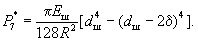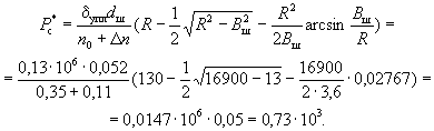где Рг* - сила сопротивления бурению, Н; li - текущая длина пилотной скважины при бурении от точки забуривания до выхода пилотной скважины из земли (от 0 до 1), м; R - радиус кривизны пилотной скважины, м; fp* - условный коэффициент трения вращающегося резца о грунт, рассчитывается по формуле