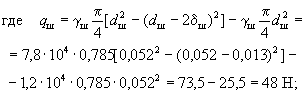 где dш - наружный диаметр буровых штанг, м; fш - коэффициент трения штанг о грунт, смоченный буровым раствором. Погонный вес штанг qш (за вычетом выталкивающей силы бурового раствора) рассчитывается по формуле где gш - удельный вес материала штанг, Н/м3; gж - удельный вес бурового раствора, Н/м3; dш - толщина стенки штанги, м. Л.3.4 Усилие увеличения силы трения от силы тяжести грунта зоны естественного свода равновесия (по М.М. Протодьяконову) Р3* рассчитывается по формуле