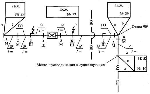 Расстояние от газопровода до опор воздушной линии связи, контактной сети трамвая, троллейбуса и электрифицированных железных дорог следует принимать как до опор воздушной линии электропередачи соответствующего напряжения. Минимальные расстояния от газопроводов до тепловой сети бесканальной прокладки с продольным дренажем следует принимать аналогично канальной прокладке тепловых сетей. Минимальные расстояния в свету от газопровода до ближайшей трубы тепловой сети бесканальной прокладки без дренажа следует принимать как до водопровода. Расстояние от анкерных опор, выходящих за габариты труб тепловой сети, следует принимать с учетом их сохранности. Минимальное расстояние по горизонтали от газопровода до напорной канализации допускается принимать как до водопровода. Минимальное расстояние от мостов железных и автомобильных дорог длиной не более 20 м следует принимать как от соответствующих дорог. ПРИЛОЖЕНИЕ Г(рекомендуемое) ДЫМОВЫЕ И ВЕНТИЛЯЦИОННЫЕ КАНАЛЫГ.1 В настоящем приложении приведены рекомендуемые положения к проектированию дымовых и вентиляционных каналов для газоиспользующего оборудования, бытовых отопительных и отопительно-варочных печей. При проектировании дымовых каналов от газоиспользующих установок производственных зданий и котельных следует руководствоваться требованиями СНиП II-35. При переводе существующих котлов, производственных печей и других установок с твердого и жидкого на газовое топливо должен выполняться поверочный расчет газовоздушного тракта. Г.2 Устройство дымовых и вентиляционных каналов должно соответствовать требованиям СНиП 2.04.05. Г.3 Дымовые каналы от газоиспользующего оборудования, устанавливаемого в помещениях предприятий общественного питания, торговли, бытового обслуживания населения, офисах, встроенных в жилое здание, запрещается объединять с дымовыми каналами жилого здания. Вентиляция вышеуказанных помещений также должна быть автономной. Г.4 Отвод продуктов сгорания от газоиспользующего оборудования, установленного в помещениях офисах, размещаемых в габаритах одной квартиры, а также вентиляцию этих помещений следует предусматривать как для жилых зданий. Г.5 Отвод продуктов сгорания от бытовых печей и газоиспользующего оборудования, в конструкции которого предусмотрен отвод продуктов сгорания в дымовой канал (дымовую трубу) (далее - канал), предусматривают от каждой печи или оборудования по обособленному каналу в атмосферу. В существующих зданиях допускается предусматривать присоединение к одному каналу не более двух печей, приборов, котлов, аппаратов и т.д., расположенных на одном или разных этажах здания, при условии ввода продуктов сгорания в канал на разных уровнях (не ближе 0,75 м один от другого) или на одном уровне с устройством в канале рассечки на высоту не менее 0,75 м. В жилых зданиях допускается предусматривать присоединение к одному вертикальному дымовому каналу более одного газоиспользующего отопительного оборудования с герметичной камерой сгорания и встроенным устройством для принудительного удаления дымовых газов. Данное оборудование располагают на разных этажах здания. Количество оборудования, присоединяемого к одному каналу, определяется расчетом. Не рекомендуется присоединение бытового оборудования к каналу отопительной печи дл