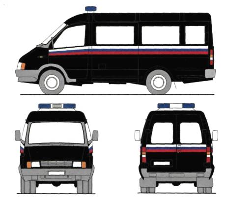 Рисунок А.46 - Цветографические схемы автомобилей органов федеральной службы безопасности, используемых для проведения неотложных действий по пресечению нарушений режима Государственной границы Российской Федерации