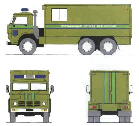 Рисунок А.43 - Цветографические схемы автомобилей органов федеральной службы безопасности, используемых для проведения неотложных действий по пресечению нарушений режима Государственной границы Российской Федерации