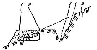 Поперечный профиль траншеи при ремонте с подъемом нефтепровода и переукладкой в новую траншею 1 - исходное положение трубопровода; 2 - проектное положение трубопровода. Рис. 17. 6.83. В зависимости от характера выполняемой операции (процесса) операционный контроль качества осуществляется непосредственно исполнителями, бригадирами, мастерами, прорабами или специальным контролером. 6.84. Приборы и инструменты (за исключением простейших щупов, шаблонов), предназначенные для контроля качества материалов и работ, должны быть заводского изготовления и иметь паспорта, подтверждающие их соответствие требованиям Государственных стандартов или технических условий, утвержденных в установленном порядке. 6.85. Выявленные в ходе контроля дефекты, отклонения от проектов и требований строительных норм и правил или технических инструкций должны быть исправлены до начала последующих операций (работ). 6.86. Операционный контроль качества выполнения земляных работ должен включать: проверку отметок и ширины полосы для работы экскаваторов (в соответствии с требованиями проектов производства работ); проверку откосов траншей в зависимости от структуры грунтом, указанных в проекте; проверку толщины слоя подсыпки на дне траншеи и толщины слоя подсыпки трубопроводов мягким грунтом; проверку отметок верха насыпи, ее ширины и крутизны откосов; проверку профиля дна траншеи с замером ее глубины и проектных отметок; проверку ширины траншеи по дну. 6.87. Ширина полосы для прохода экскаваторов контролируется промером стальной лентой и рулеткой. 6.88. Ширина траншеи по дну контролируется шаблонами, опускаемыми в траншею. 6.89. Расстояние от оси трубопровода до стенки траншеи по дну на сухих участках трассы должно быть не менее половины проектной ширины траншеи, эту величину не следует превышать более чем на 200 мм. 6.90. Фактическая отметка дна траншеи в любой точке не должна превышать проектную и может быть менее ее на величину до 100 мм. 6.91. Если проектом предусмотрена подсыпка рыхлого грунта на дно траншеи, то толщина выравниваемого слоя рыхлого грунта контролируется щупом, опускаемым с бермы траншеи. Толщина выравниваемого слоя должна быть не менее проектной; допуск на толщину слоя приведен в табл. 5. 6.92. При подземной прокладке трубопровод на всем протяжении должен опираться на дно траншеи или ложе насыпи. 6.93. Если проектом предусмотрена присыпка трубопровода мягким грунтом, то толщина слоя присыпки, уложенного в траншею трубопровода, контролируется мерной линейкой. Толщина слоя присыпки должна быть не менее 200 мм. Допускается, чтобы отклонение толщины слоя находилось в пределах, указанных в табл. 5. 6.94. Отметки рекультивированной полосы контролируют геометрическим нивелированием. Фактическая отметка полосы определяется во всех точках, где в проекте рекультивации земель указана проектная отметка. Фактическая отметка должна быть не менее проектной и не превышать ее более чем на 100 мм. 6.95. На нерекультивируемых землях с помощью шаблона контролируется высота валика, которая должна быть не менее проектной и не превышать проектную высоту на величину более 200 мм. 6.96. С целью комплексного ведения работ, а также предотвращения обрушения и оплывания стенок траншеи необходимо контролировать сменный темп разработки траншеи, который должен соответствовать сменному