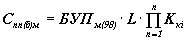 где: БУПм(98); БУПу(98) - базовые удельные показатели стоимости разработки проекта планировки магистрали или транспортного узла (значения БУПм(98) и БУПу(98) представлены в таблицах 4 и 5); L - протяженность магистрали в км; N - количество транспортных узлов одинакового класса;