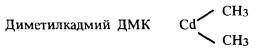 М. м. 142,88 Ткип. - 105,5 °С. Тпл. - 4,5 °С. Плотность - 1,98 г/см3. ДМК - тяжелая бесцветная жидкость с неприятным запахом, хорошо растворимая в простых и сложных эфирах, углеводородах. Разлагается кислотами, спиртами, при действии паров воды гидролизуется с выделением метана. В воздухе находится в виде паров. ДМК относится к чрезвычайно токсичным соединениям (1-й класс опасности). ПДК в воздухе - 0,005 мг/м3. Характеристика методаМетодика основана на восстановление ионов кадмия на ртутном капельном электроде в переменно-токовом режиме на фоне 0,5 н HCl. Отбор проб проводится с концентрированием в поглотительный прибор. Нижний предел измерения ДМК в анализируемом объеме - 0,012 мкг/мл. Нижний предел измерения ДМК в воздухе - 0,0025 мг/м3 (при отборе 50 л воздуха). Диапазон измеряемых концентраций в воздухе от 0,0025 до 0,03 мг/м3. Определению не мешают присутствующие по технологии примеси: медь, магний, марганец, алюминий, железо, хром, никель, галлий, индий, диэтиловый эфир. Суммарная погрешность измерения не превышает ±25 %. Время выполнения измерения, включая отбор проб, - 50 мин. Приборы, аппаратура, посуда